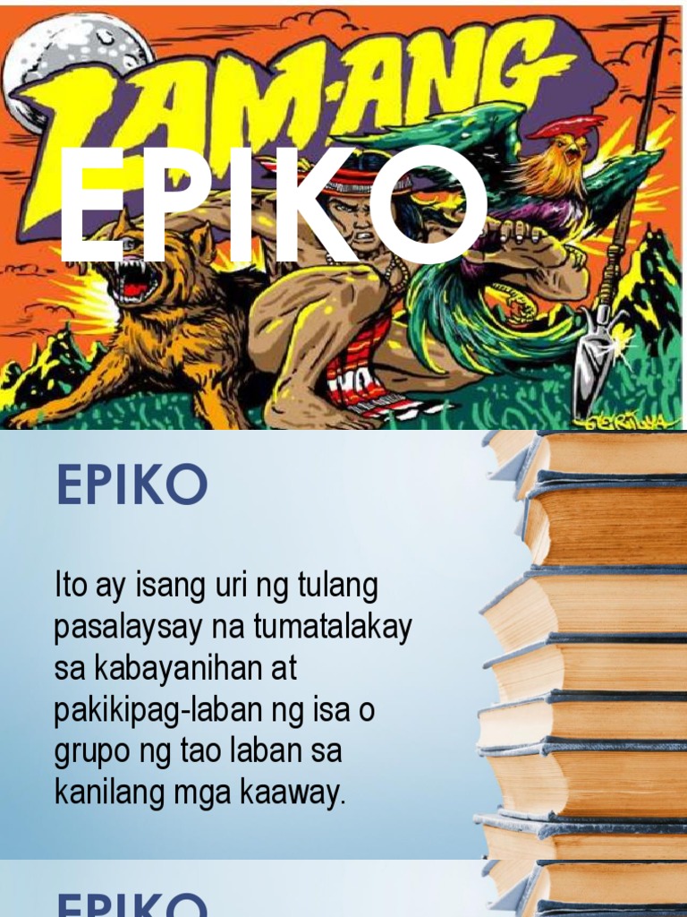 Ito ay pangunahing pasalitang anyo ng pampanitikan na matatagpuan sa mga ibat-ibang grupong etniko. Click to expand document information. HALIMBAWA NG EPIKO Sa paksang ito ating aalamin at tuklasin ang mga ibat ibang halimbawa ng epiko na isang panitikang patula.