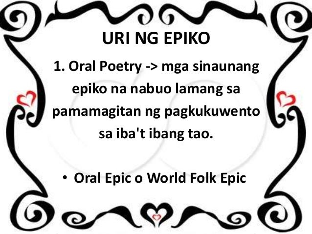This particular long tale is sung during harvest. KATANGIAN NG EPIKO Sa ating paksa ating alamin at tuklasin ang mga ibat ibang katangian ng epiko na isang panitikang patula. Hula mo pix ko Panuto 1.